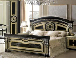 - Default Set Includes1 x Aida Panel Bed (Black and Gold) (Queen) 1 x Aida Panel Bed (Black and Gold) (King)