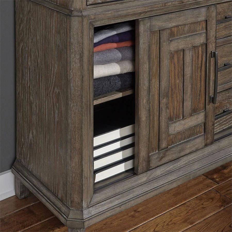- OverviewMake a statement with the simplicity of the Artisan Prairie Collection by Liberty Furniture. Rooted in the arts and crafts movement, this collection features a wirebrushed aged oak finish with gray dusty wax.