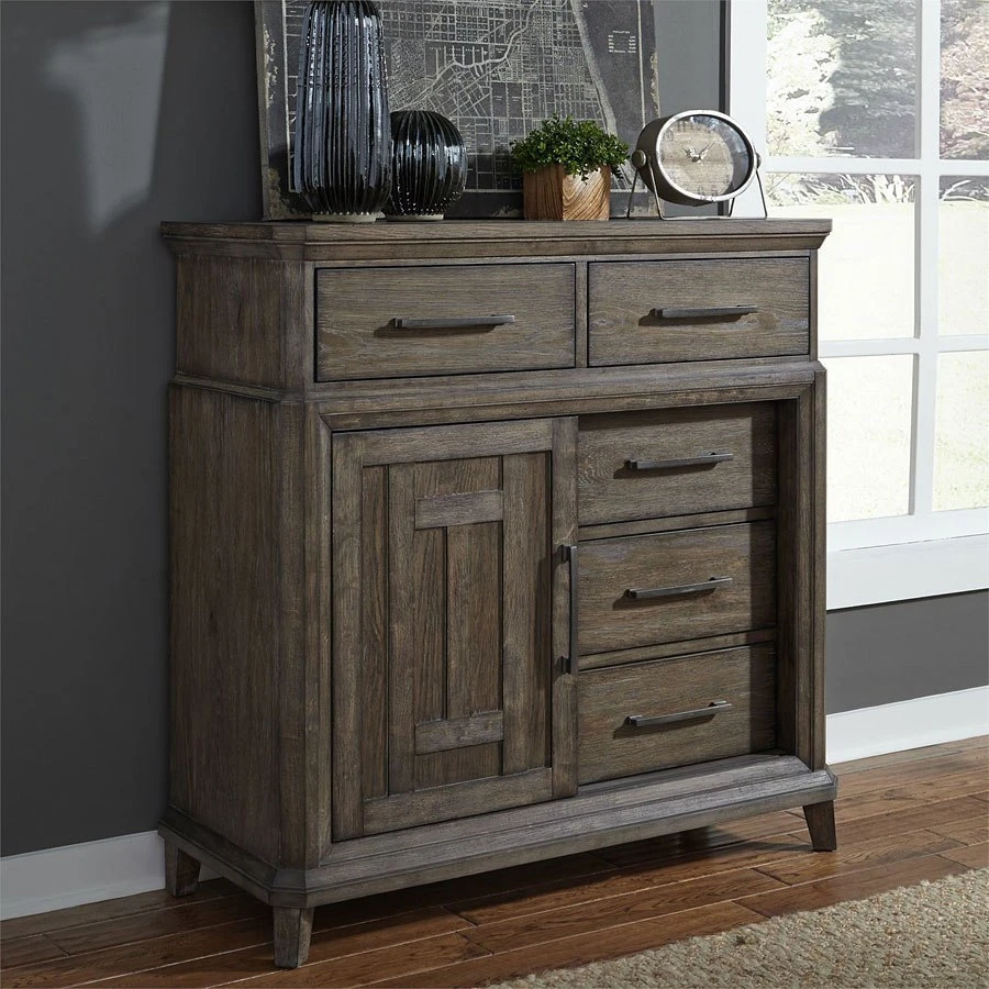 - OverviewMake a statement with the simplicity of the Artisan Prairie Collection by Liberty Furniture. Rooted in the arts and crafts movement, this collection features a wirebrushed aged oak finish with gray dusty wax.