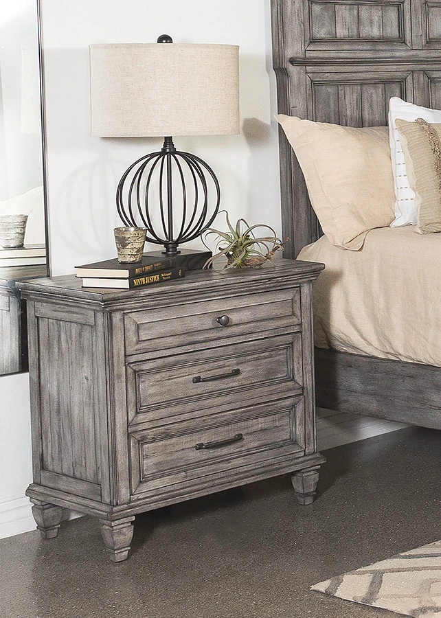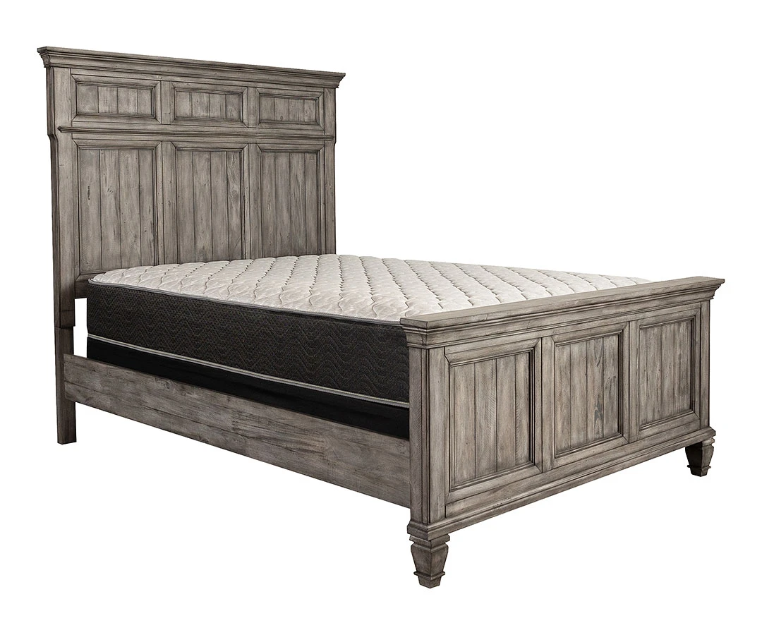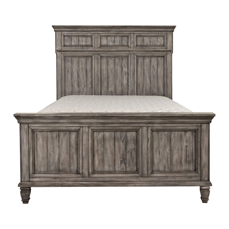 - OverviewElevate your modern farmhouse bedroom with this rustic-inspired traditional Avenue Panel Bed by Coaster Furniture, designed with a stately oversized headboard with crown molding and wood paneling details. A weathered-like grey finish offers a neutral color palette that matches many color palettes and decor, lending a charming casual look to bedrooms and guest rooms.