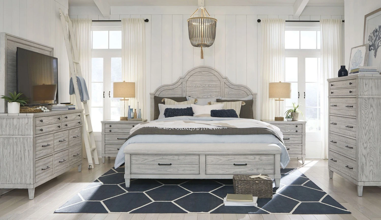 - OverviewCreate an inviting space with lots of character with Belhaven Bedroom Collection by Legacy Classic. Belhaven is a truly relaxed and welcoming collection that will feel at home in multiple settings. The coastal, cottage, and modern farmhouse design elements found throughout blend well and create a versatile tone for this collection. Crafted of Rubberwood solids and Flat Cut Oak veneers. The Weathered Plank finish has a white-washed look with wire brushing, distressing and worn edges that all add to the authentic feel of this collection. Bar pulls and knobs in a dark, Forged Iron finish complete the look. Belhaven will add style and value to the home for years to come.