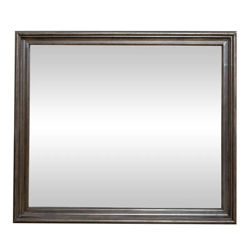 - OverviewUse this large scale and stylish Big Valley Mirror by Liberty Furniture to complete your traditional look. The Brownstone finish features heavy distressing and graduated bead molding that adds architectural interest to the piece. The 1-inch bevel adds a luxurious touch, making this a piece you’ll look at daily.