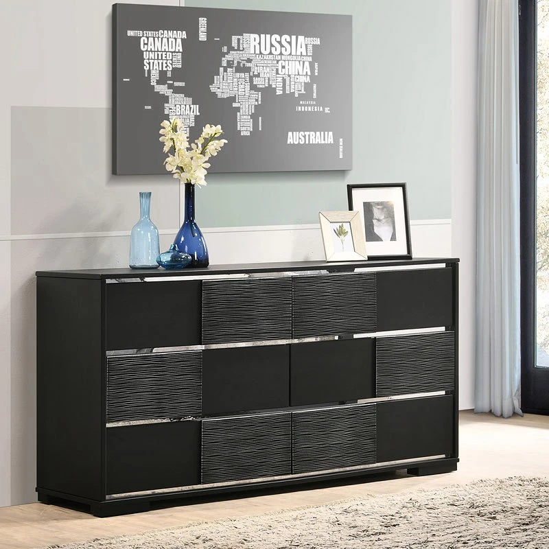 - OverviewElegant chambered trim and drawer fronts create a dimensional look that enhances an understated Blacktoft Bedroom Collection by Coaster Furniture. Handsome black finish adds versatility to your decor.