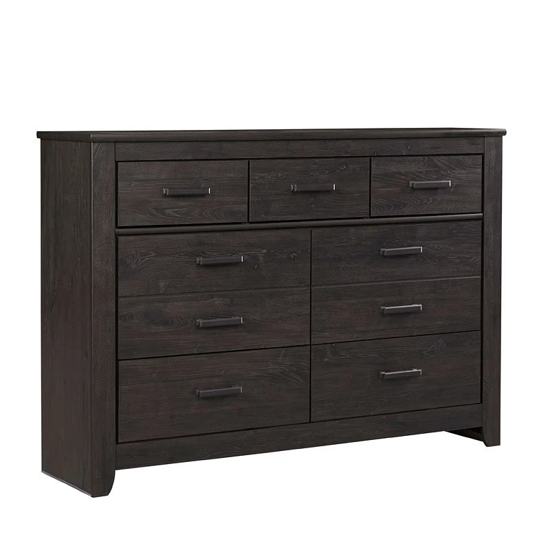 - OverviewPriced to entice and styled to impress, the Brinxton Dresser by Signature Design is urban sophistication with a decidedly relaxed air. It’s got the crisp, clean lines of a contemporary piece, but with an earthy element. Replicated oak grain effect gives the chic charcoal finish warmth and character. Linear pulls are a sleek touch.