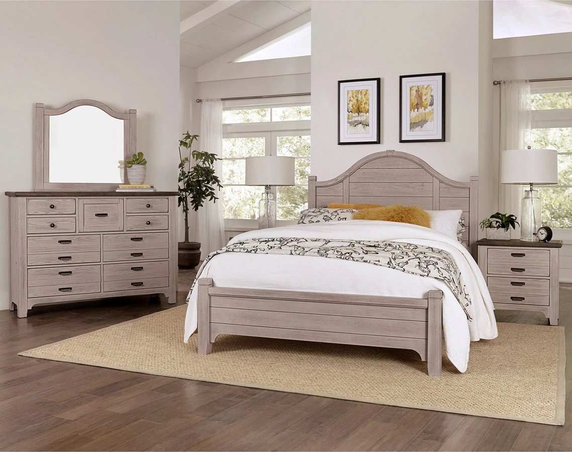 - Default Set Includes1 x Bungalow Arched Bed (Dover Grey) (Queen) 1 x Bungalow Arched Bed (Dover Grey) (King) 1 x Bungalow One Drawer Nightstand (Dover Grey) 1 x Bungalow Two Drawer Nightstand (Dover Grey)