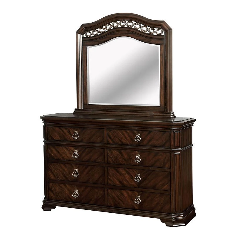 - OverviewThis stately Calliope dresser by Furniture of America features a classic rich espresso finish, clipped corner and strong trim lines grounded them in sophisticate appeal. The deep wooden grain patterns on the drawer face combine with the antique pulls to exude elegance.