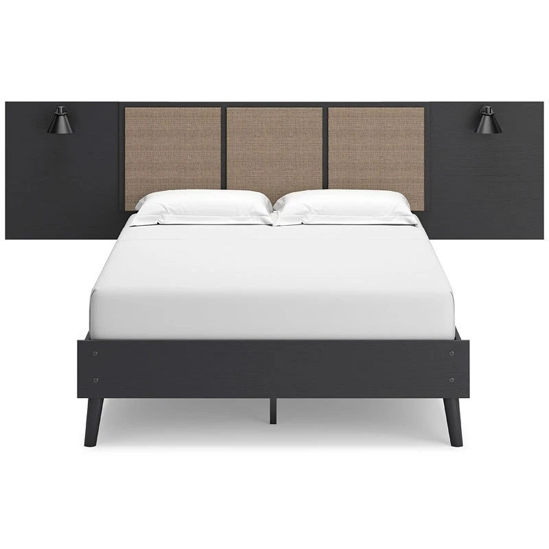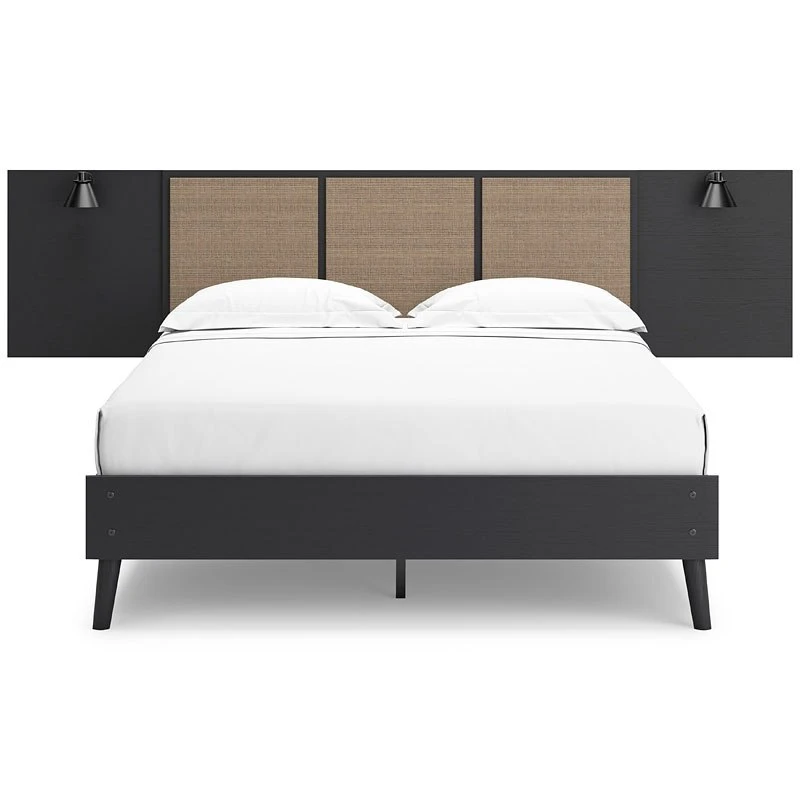 - OverviewPut a retro spin on current trends with this Charlang Bedroom Collection by Signature Design. Its mixed-material look of matte black and replicated beige cane brings a casually cool feel to your bedroom. For late-night reading, the extensions include chic matte black sconce lights. The bed’s sleek frame and splay legs round out the urban meets mid-century vibe.