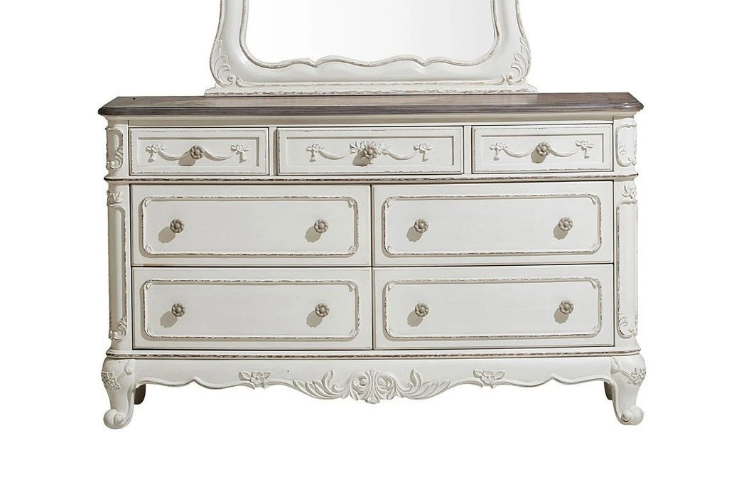 - OverviewThe Cinderella Collection by Homelegance is your little child’s dream. The Victorian styling incorporates floral motif hardware and traditional carving details that will create the feeling of a room worthy of a fairy tale. Antique white with grey rub-through finish when paired with the multitude of case pieces and bed allows versatility of placement and decor within your available space.