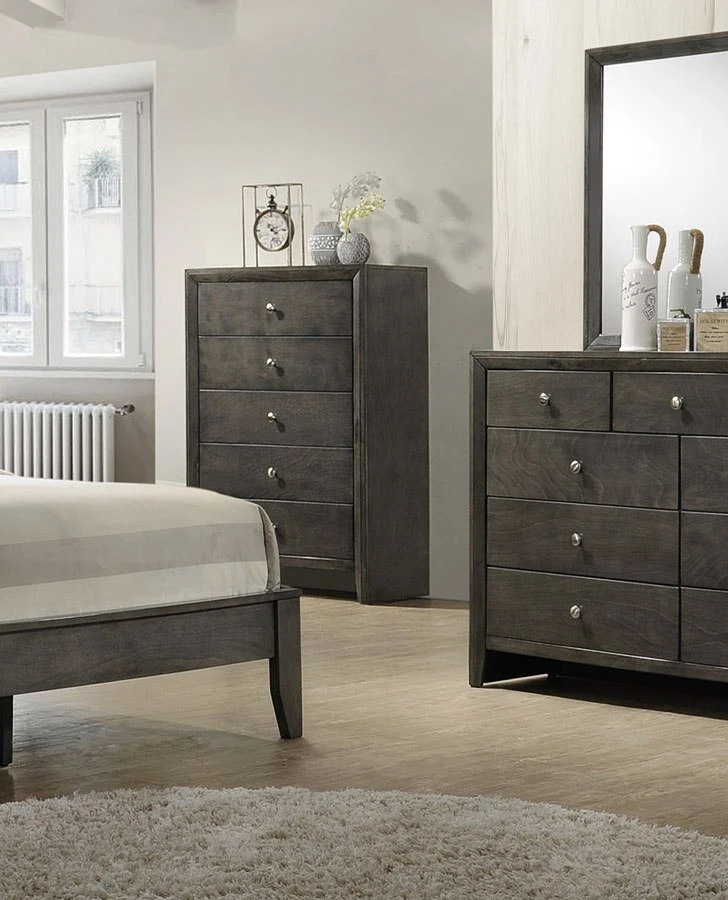 - OverviewUnderstated and simplified in design, the Evan Bedroom Collection by Crown Mark Furniture has been designed to outfit the bedroom in your home with sleek storage and comfort options.
