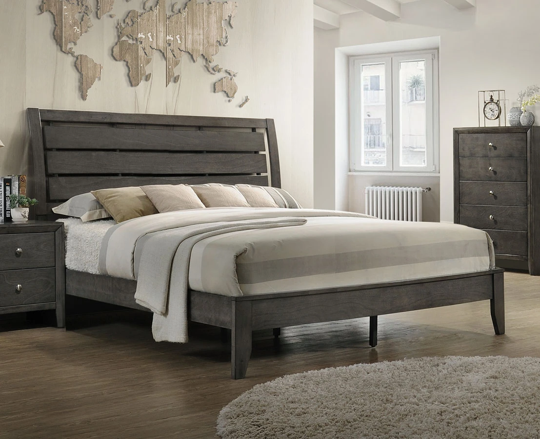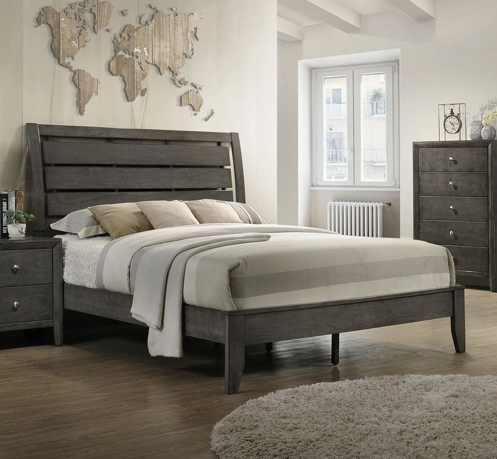 - Default Set Includes1 x Evan Low Profile Bed (Grey) (Queen) 1 x Evan Low Profile Bed (Grey) (King) 1 x Evan Nightstand (Grey)