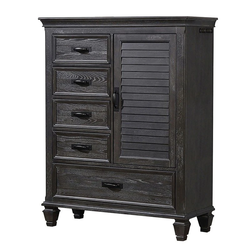 - OverviewSpend every day in a coastal resort paradise with the Franco Bedroom Collection by Coaster Furniture. Trending new finish color, weathered sage, is a rich, dark brown color with a grey undertone that has a weathered effect. Bed without storage requires foundation, while storage bed does not require a foundation. Your choice!