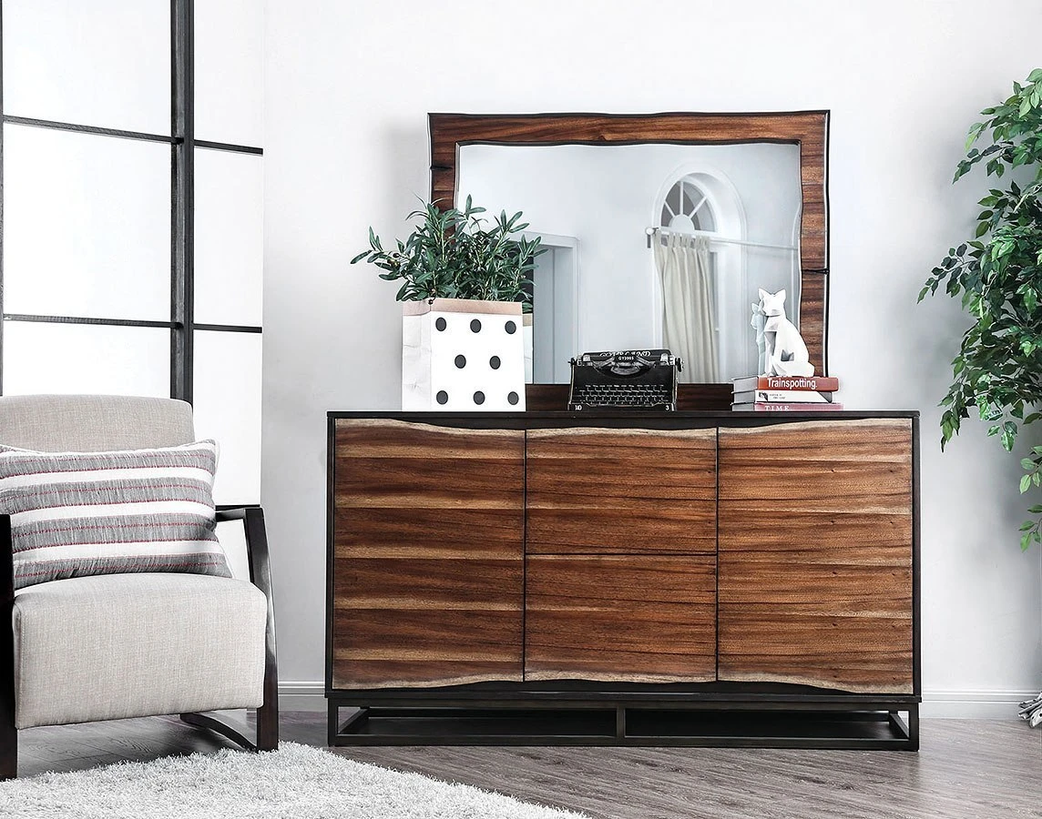 - OverviewThe hand-made looking Fulton dresser by Furniture of America is crafted with a rich reclaimed wood aesthetic for an authentic country feel you simply cannot get any other way! It features split wood drawer face planks with modern styled dark walnut siding to help tone down the powerful rustic elements and bring a modern fashionable subtlety.
