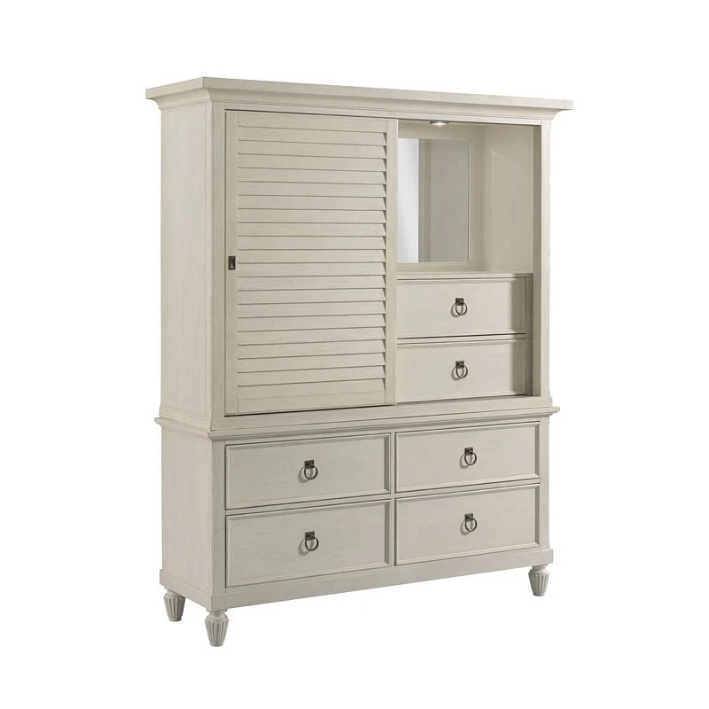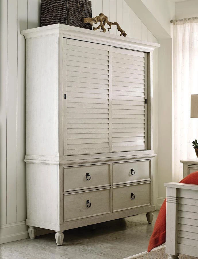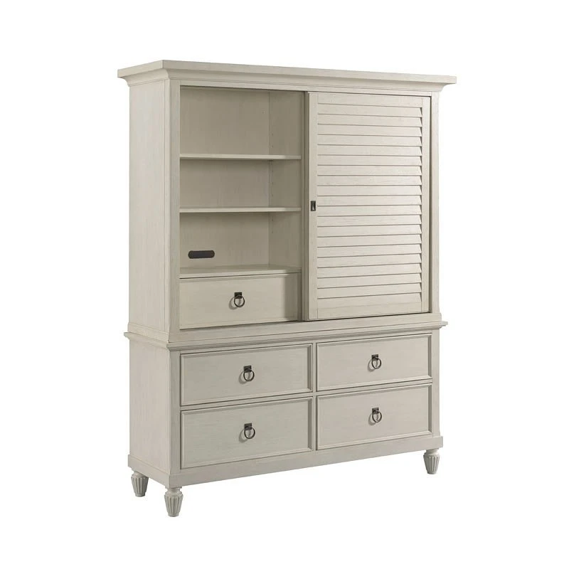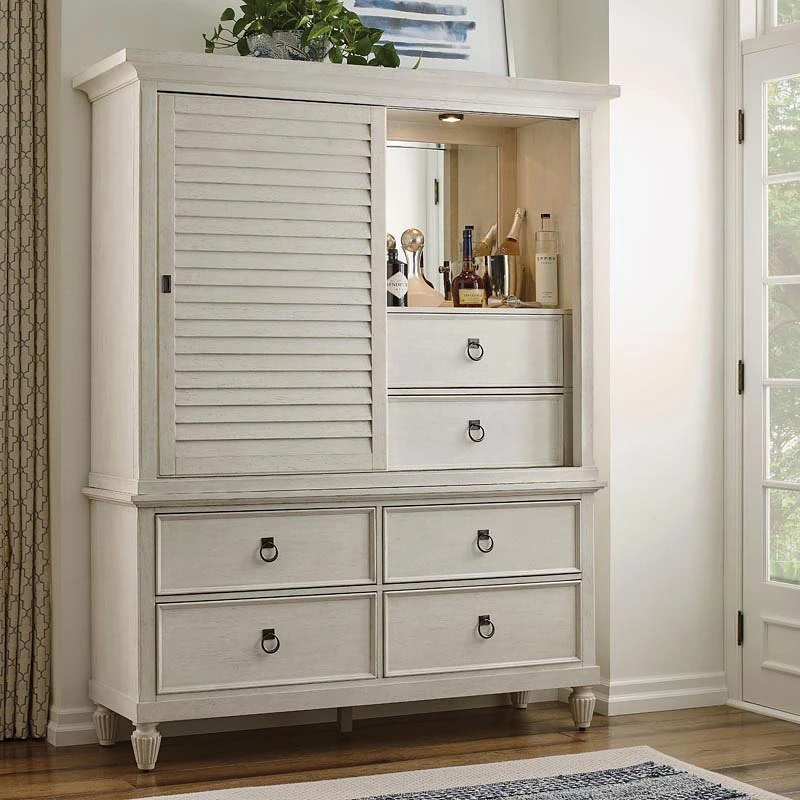 - OverviewThis Grand Bay Media Wardrobe by American Drew Furniture is not exactly what might come to mind when we think of the traditional wardrobe piece. For the Grand Bay Media Wardrobe, storing clothes is only one possible application. Whether the need calls for a serving station with storage in the living room or a functional organizer for the bedroom environment, this statement piece can do it all!