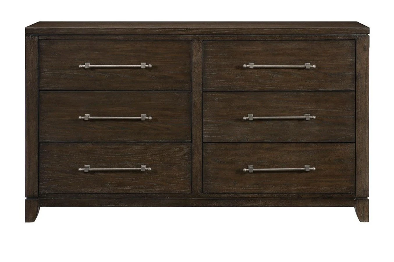 - OverviewThe contemporary styling of the Griggs Bedroom Collection by Homelegance will be the perfect addition to your bedroom. The prominent ash veneer over acacia solids features an espresso finish lending to the modern appearance. Fixed drawer pulls center each case piece further lending to the soft modern look.
