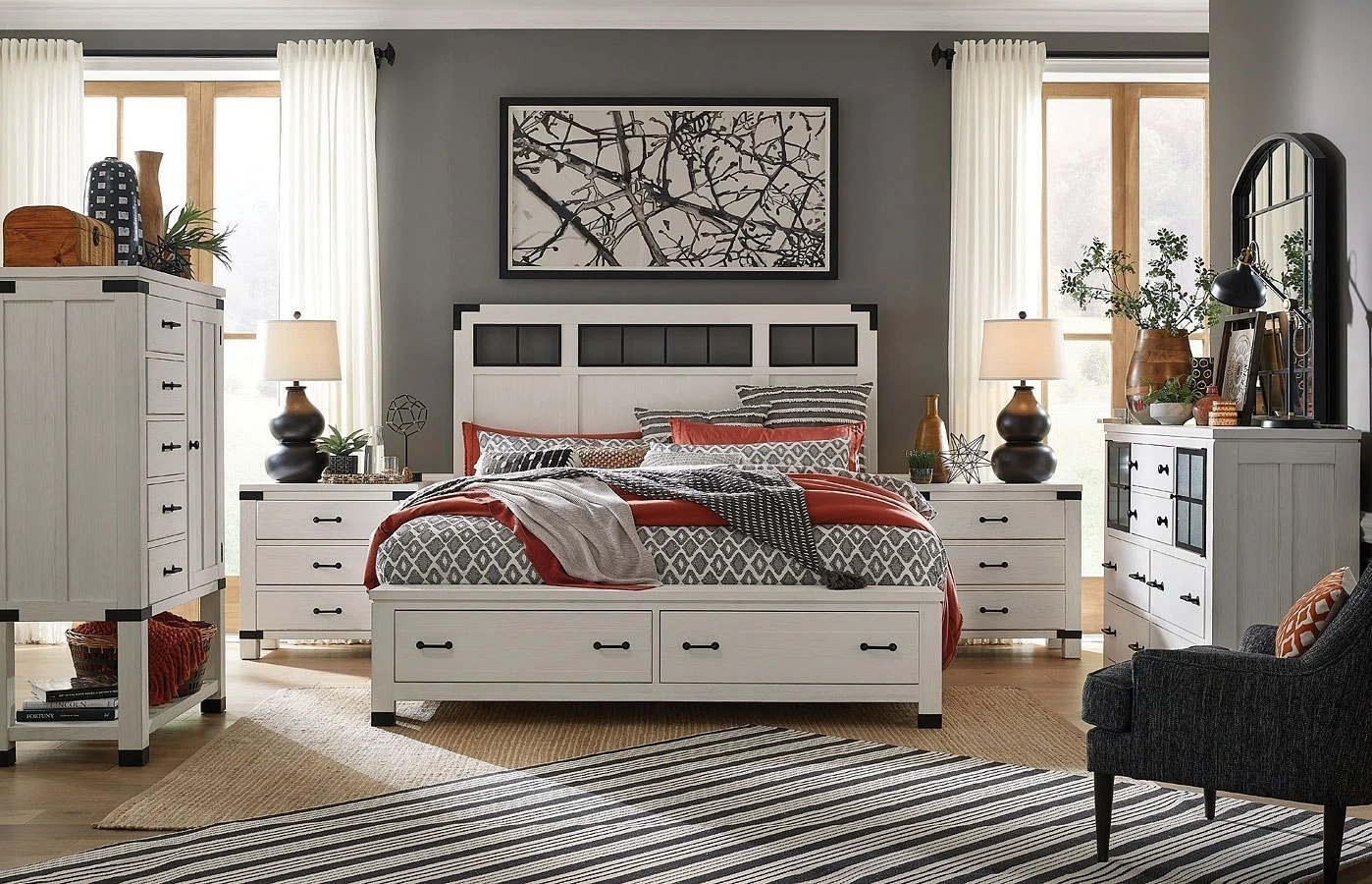 - Default Set Includes1 x Harper Springs Metal/ Wood Headboard Storage Bed (Queen) 1 x Harper Springs Metal/ Wood Headboard Storage Bed (King) 1 x Harper Springs Metal/ Wood Headboard Storage Bed (California King) 1 x Harper Springs Drawer Nightstand 1 x Harper Springs Bachelor Chest