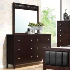- OverviewThe elegant and functional design of the Jaxson Bedroom Collection by Coaster Furniture will be a wonderful addition to any bedroom in your home. The dresser features beveled drawer fronts and felt lining. Finished in an attractive cappuccino, choose this dresser for a warm and tranquilizing look in your home.
