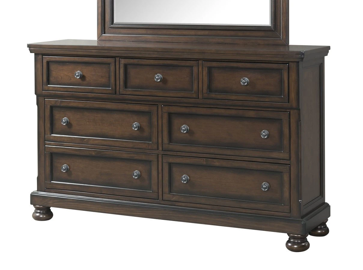 - OverviewCreate a warm and inviting atmosphere with the cozy Kingston Collection by Elements Furniture. This lovely group features a rich walnut finish paired with oil rubbed bronze finished knobs. Hooded tops and elegant bun feet complete the look of this handsome collection.