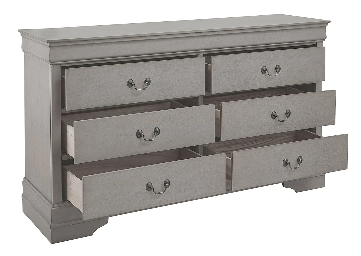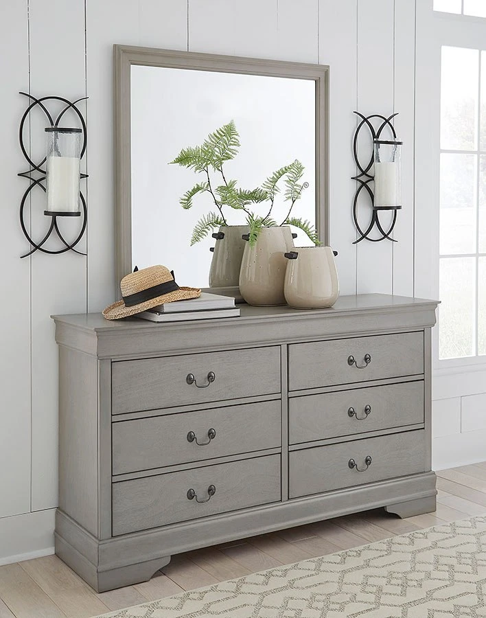 - OverviewThe Kordasky Bedroom Collection by Signature Design offers traditional Louis Phillippe styling and is made with select hardwood solids, Okoume veneers and engineered wood substrates in a dove gray finish.