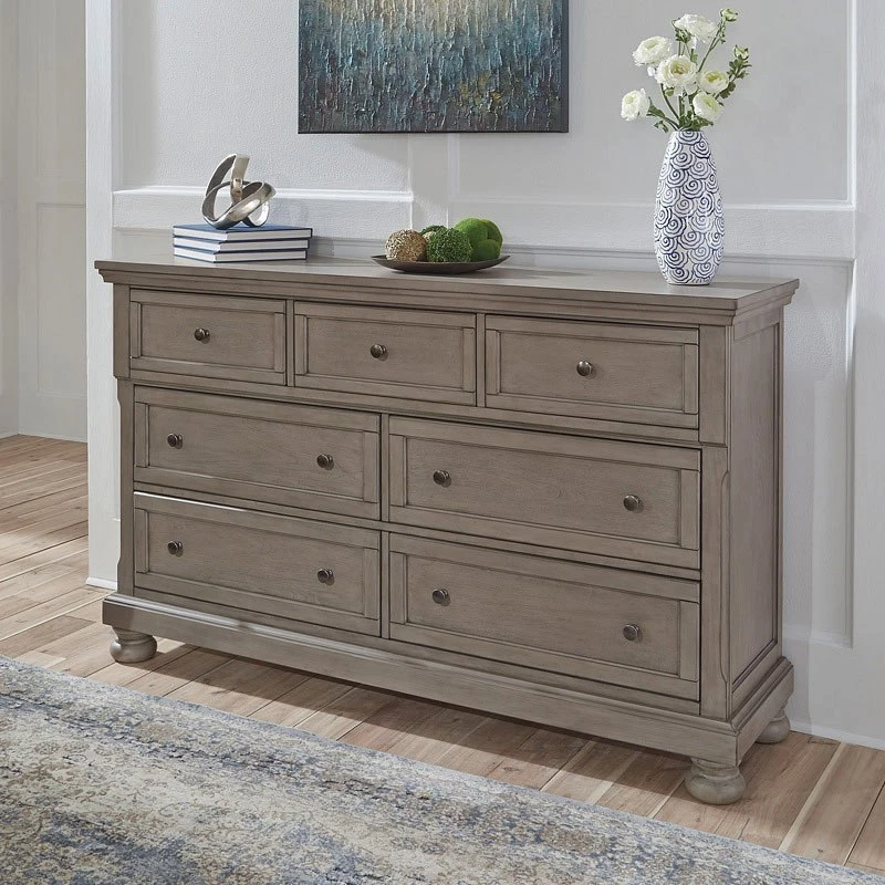- OverviewSatisfying your taste for tradition, the Lettner Bedroom Collection by Signature Design sports serene sophistication. Forever classic design details – inlaid panels, silvertone patina hardware and bun feet – are so easy to love. Burnished light gray finish elevates the look with modern sensibility.