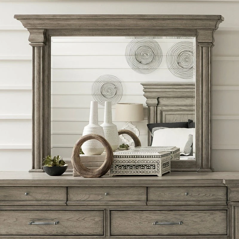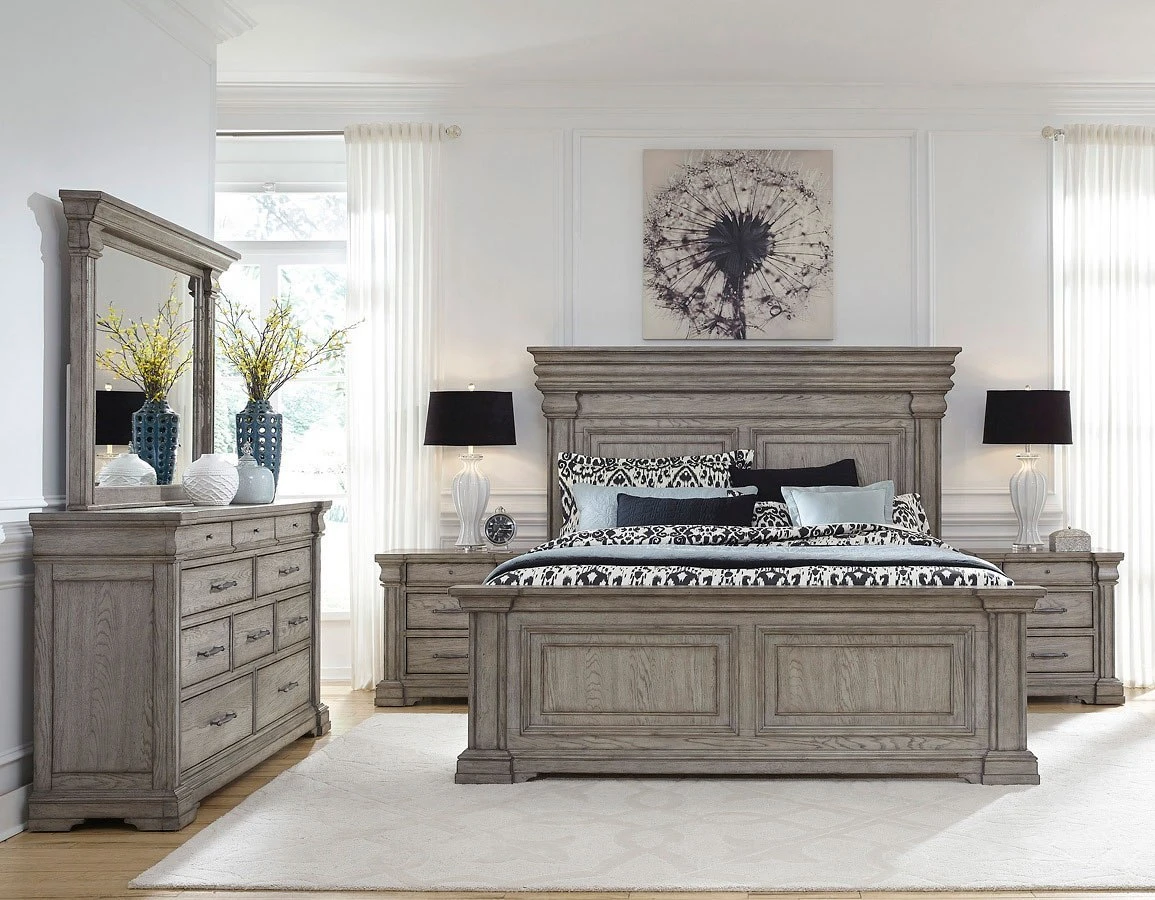 - OverviewThe Madison Ridge Bedroom Collection by Pulaski Furniture is a larger scale transitional collection with traditional elements. The pilaster on the bed and cases are inspired by fireplace moldings. The Bluff Grey on flat cut oak adds warmth to this collection.