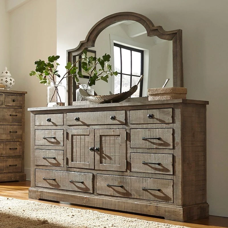 - OverviewCreate a relaxed environment with the rustic look of the Meadow Bedroom Collection by Progressive Furniture. Constructed of rough hewn salvaged pine in a weathered gray finish, the variations apparent in the wood’s finish provide modern farmhouse style to your decor.