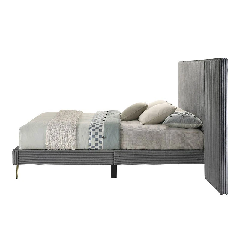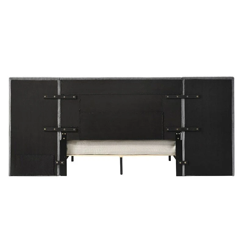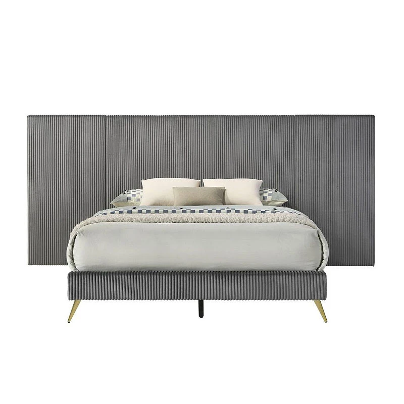 - OverviewThis Muilee Wall Bed by Acme Furniture is anything but subtle. It produces a bold statement in any bedroom. The bed is fully padded in a luxurious silver fabric. Its oversized channel-tufted headboard is an eye-catching focal point. This feature adds depth and visual contrast to any room. Sitting on stylish gold metal legs for stability.