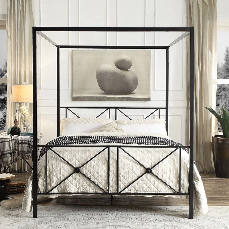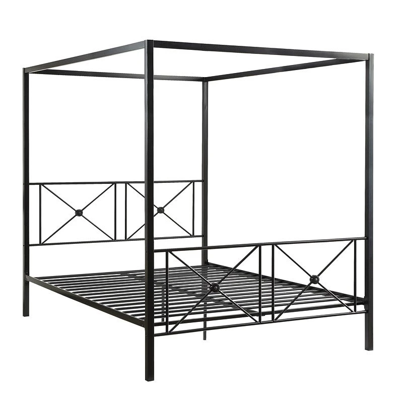 - OverviewDouble X-framing provides distinct decorative accenting to the headboard and footboard of the Rapa Canopy Metal Bed by Homelegance. Unadorned canopy framing creates a clean and sophisticated look, with medallion accents lending to the modern traditional feel of the Rapa Collection’s design. The built-in platform support allows for the use of a mattress without a box spring. The Rapa collection is offered in twin and queen size bed options for versatile placement within your home.