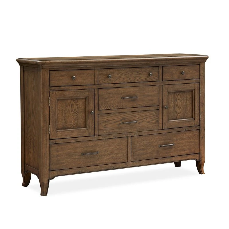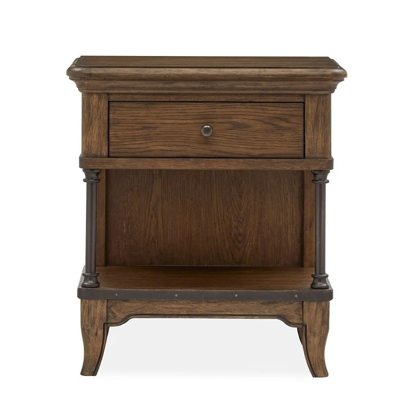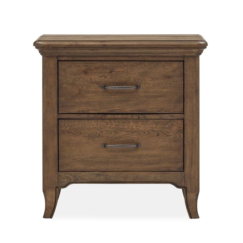- OverviewThe Roxbury Manor Bedroom Collection by Magnussen is a relaxed spin on timeless design, combining shapely silhouettes with classic style details and a casual Homestead Brown finish. Roxbury has a romantic European Country flavor updated with the inviting and warm Homestead Brown finish over Hi-Low Cathedral Knotty White Oak Veneers and Hardwood Solids. Whether you love classic traditional, European country, or rustic chic, you will love coming home to Roxbury Manor.