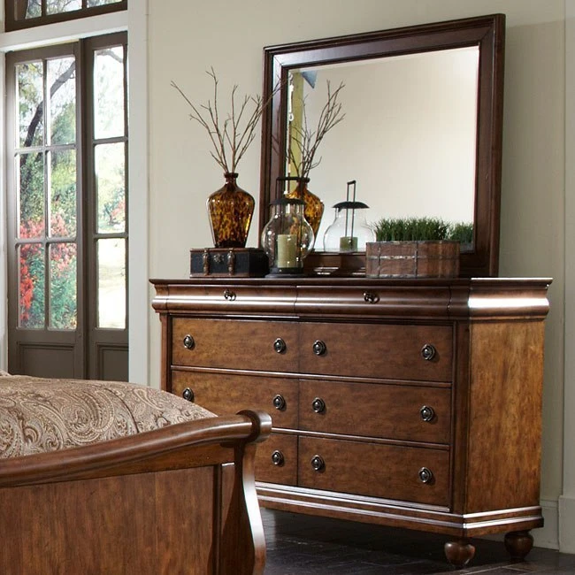 - OverviewThe Rustic Traditions Rectangular Bedroom Collection by Liberty Furniture has a more casual feel and this is mostly achieved through well, worn, rustic finishes. The collection is crafted from poplar solids and pin-knotty cherry veneers and is the heirloom quality of Louis Philippe design with a burnished, rasped, rustic cherry finish. This collection is appropriate for a variety of home settings and will appeal you for years.
