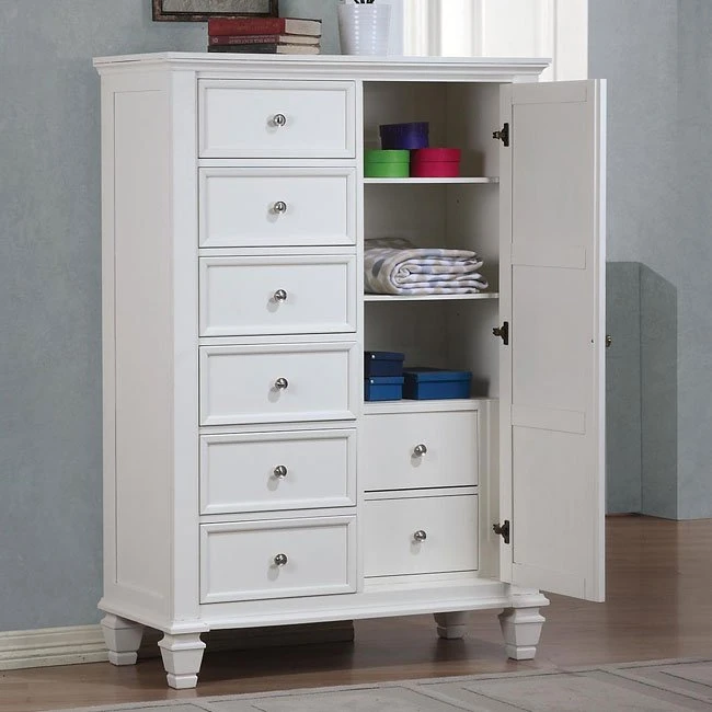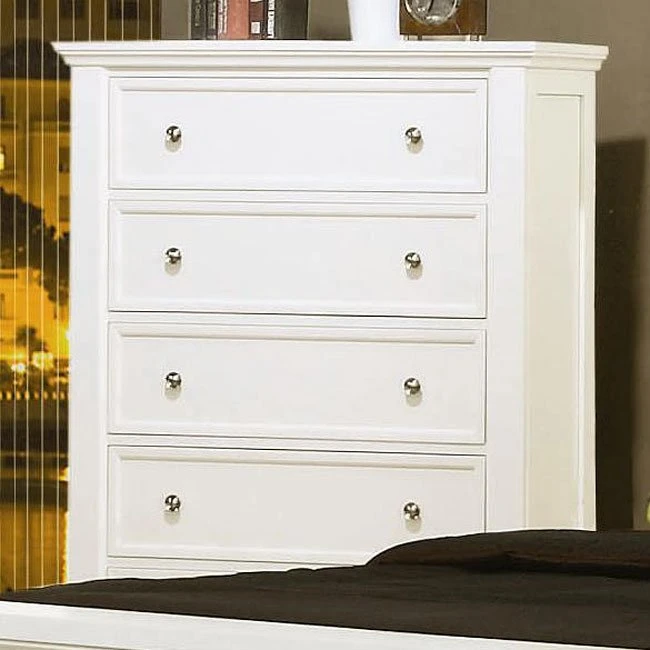 - OverviewThe Sandy Beach Bedroom Collection will infuse your master bedroom decor with clean lines and a classic style. The collection includes a variety of bedroom pieces to meet your needs. Fully extending drawers are convenient, with durable dovetail construction to last a lifetime. With simple styles and classic molding, you can create a timeless look in your bedroom. Available in White finish on pieces constructed of tropical hardwoods and veneers, these calming bedroom pieces are sure to complement your style and complete your inviting bedroom ensemble.