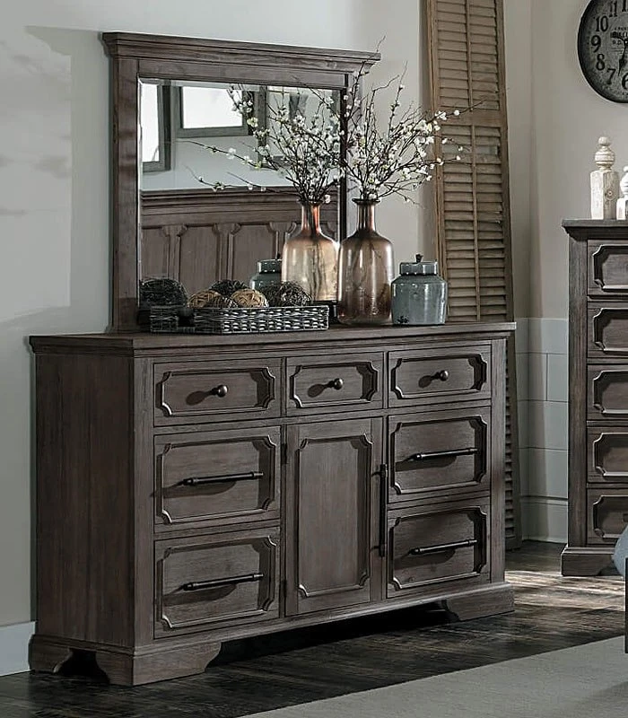 - OverviewClassic framing provides elegant contrast to the unique rustic look of the Toulon Bedroom Collection by Homelegance. Wire-brushed distressing provides texture to the acacia veneer of this lovely bedroom suite. The French provincial inspired routing lends decorative touch to each piece, while dual drawer and door storage are accented with wide set horizontal metal and wood hardware providing ample space to store your personal possessions.