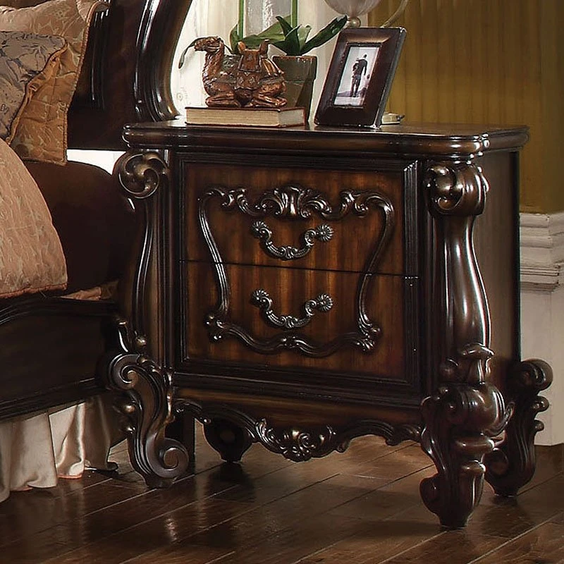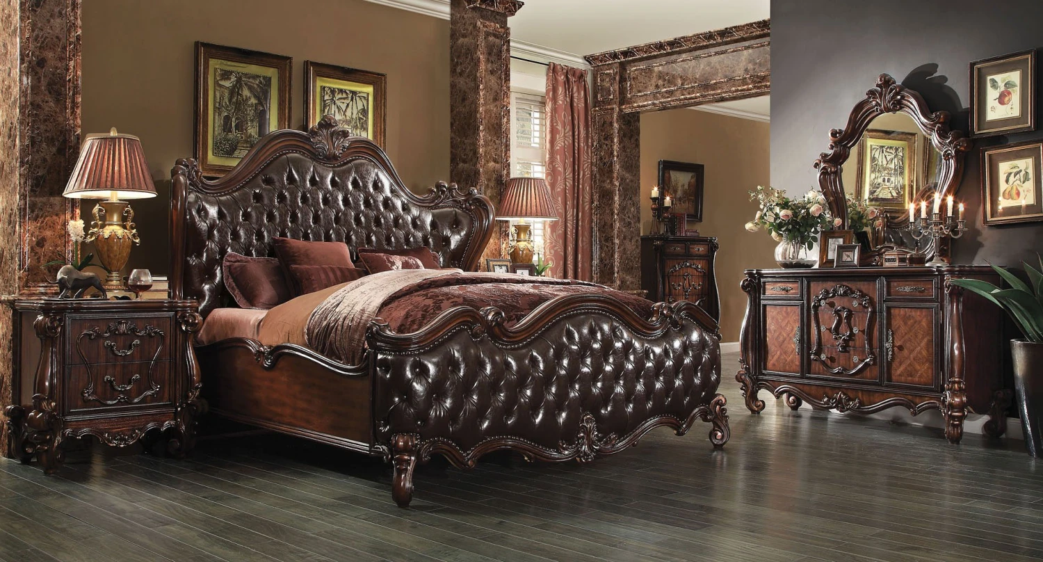 - OverviewThe Versailles Bedroom Collection by Acme Furniture harmonizes traditional details with functional design to accommodate today’s classic style. This bedroom collection features nail-head trim accents, hand-carved style overlays and oversized scrolled details throughout all case pieces. The ample storage case pieces, beveled mirror, felt lined drawers, and brown copper finish hardware makes this collection truly elegant and will be a great addition to your home.