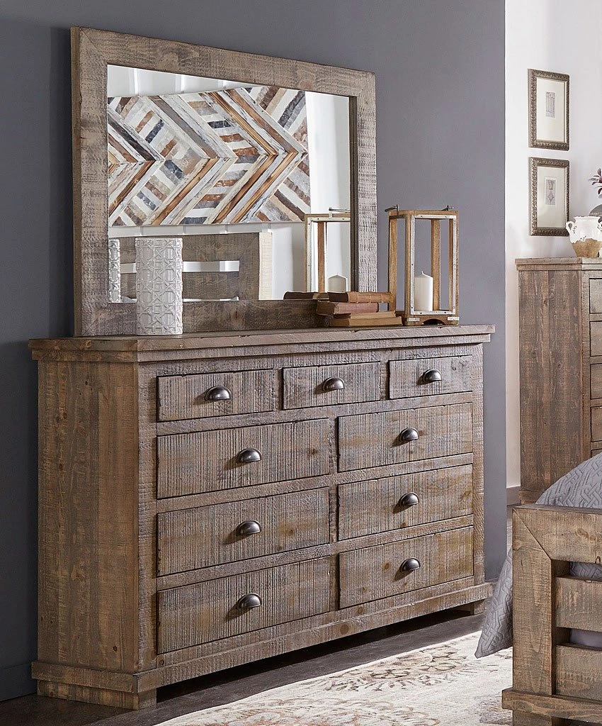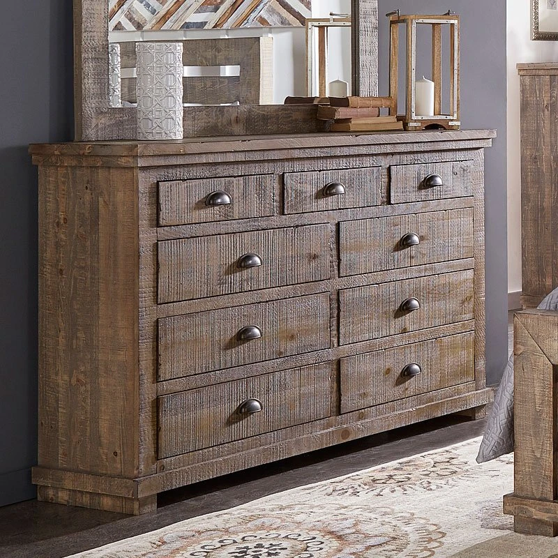 - OverviewThis Willow Bedroom Collection by Progressive Furniture bestows elegance with the splendor of a unique finish and the nature of salvaged wood. Willow has hand applied distressing on rough hewn and planed pine solids to achieve a natural, vintage look. Tongue and groove construction with pine solids produce durable cases. Gunmetal finish on nostalgic cup pulls. Also known as Castagnier by Lark Manor.