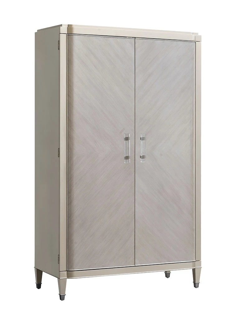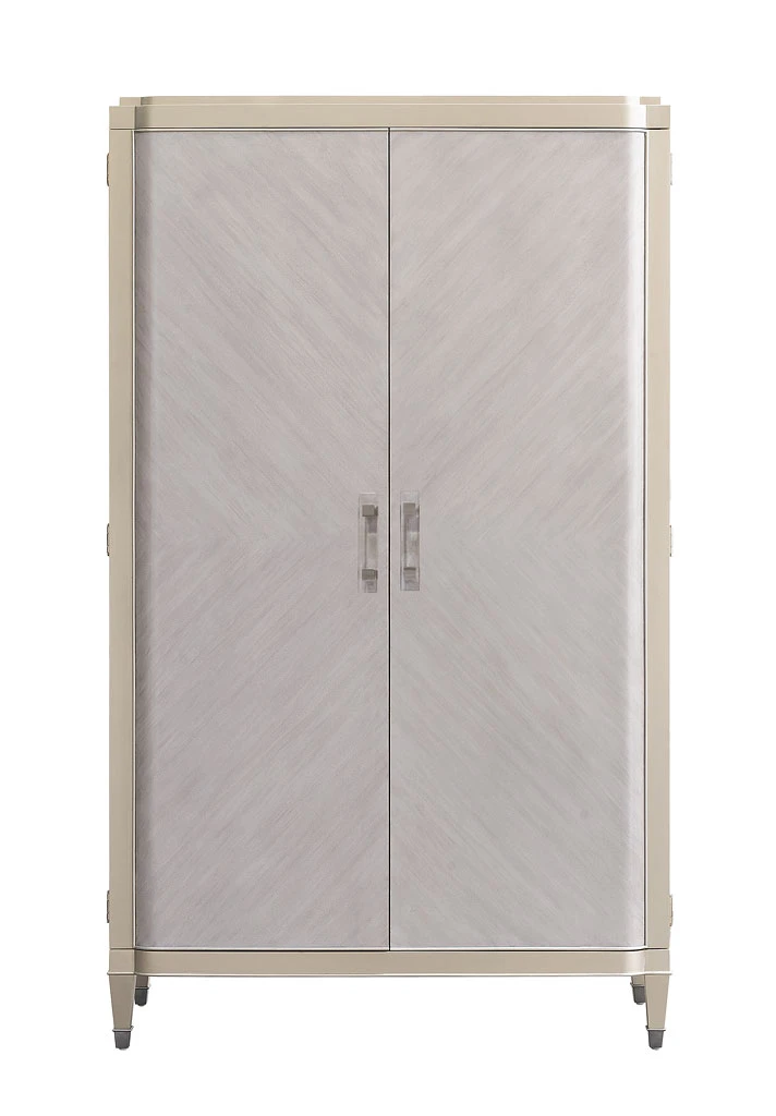 - OverviewClassic, modern style and function unite with our beautiful Zoey Storage Armoire Cabinet. The puck light and pull-out dropdown drawer effortlessly transform this armoire into a workspace, while the interior shelving and four spacious drawers help keep your space uncluttered and organized. Tapered legs with silver-finished ferrules offer support and stability for the champagne-finished frame. Whether used in your bedroom or home office, this armoire cabinet adds function and a timeless, elegant appeal to your home.